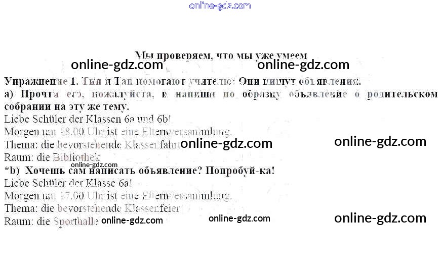 Готовые домашние задания по Немецкому языку за 6 класс Рабочая тетрадь Бим, Фомичева 2008 - Мы проверяем, что мы уже умеем Глава 4. Что наши немецкие друзья делают в школе 1
