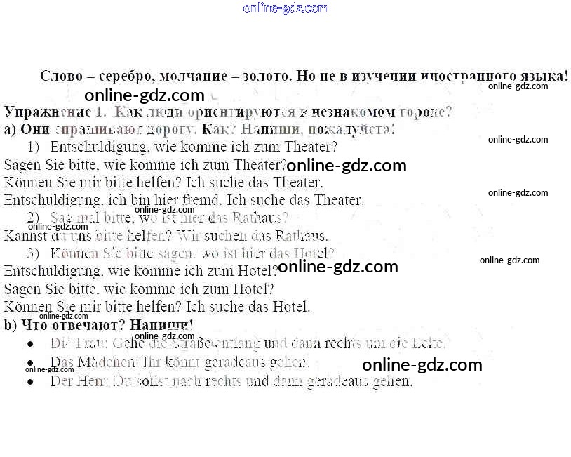 Готовые домашние задания по Немецкому языку за 6 класс Рабочая тетрадь Бим, Фомичева 2008 - Слово-серебро, молчание-золото Глава 6. Поездка с классом по Германии 1