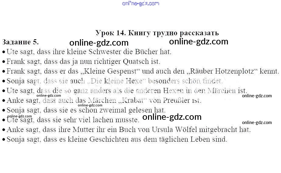 Готовые домашние задания по Немецкому языку за 6 класс Учебник Радченко, Хебелер Alles Klar! 2014 - Урок 14 5