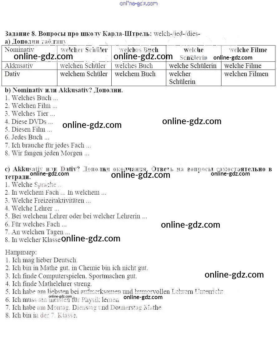 Готовые домашние задания по Немецкому языку за 7 класс Рабочая тетрадь Аверин, Джин Horizonte 2013 - Глава 5. Совместная жизнь 8