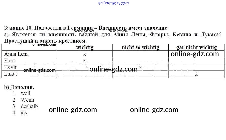 Готовые домашние задания по Немецкому языку за 7 класс Рабочая тетрадь Аверин, Джин Horizonte 2013 - Глава 6. Это мне нравится 10