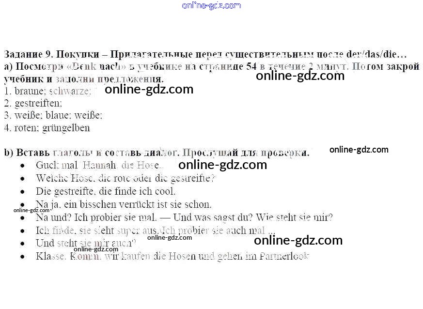 Готовые домашние задания по Немецкому языку за 7 класс Рабочая тетрадь Аверин, Джин Horizonte 2013 - Глава 6. Это мне нравится 9