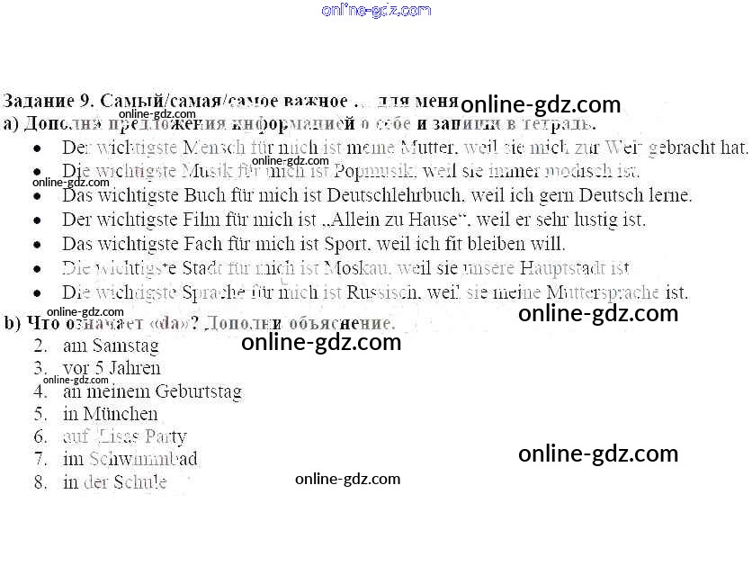 Готовые домашние задания по Немецкому языку за 7 класс Рабочая тетрадь Аверин, Джин Horizonte 2013 - Глава 7. Больше обо мне 9