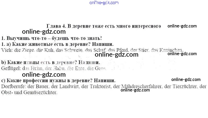 Готовые домашние задания по Немецкому языку за 7 класс Рабочая тетрадь Бим, Садомова 2012 - Выучишь что-то – будешь что-то знать! Глава 4. В деревне тоже есть много интересного 1