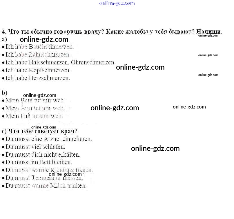 Готовые домашние задания по Немецкому языку за 7 класс Рабочая тетрадь Бим, Садомова 2012 - Выучишь что-то – будешь что-то знать! Глава 6. В здоровом теле – здоровый дух 4
