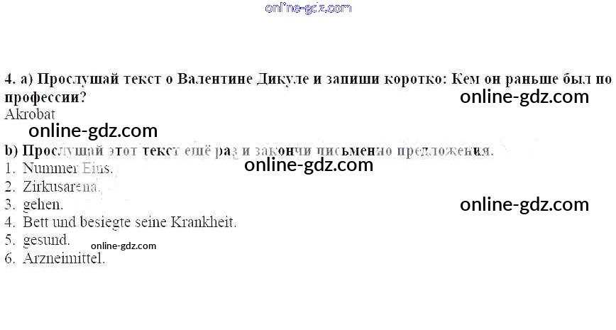 Готовые домашние задания по Немецкому языку за 7 класс Рабочая тетрадь Бим, Садомова 2012 - Мы внимательно слушаем Глава 6. В здоровом теле – здоровый дух 4