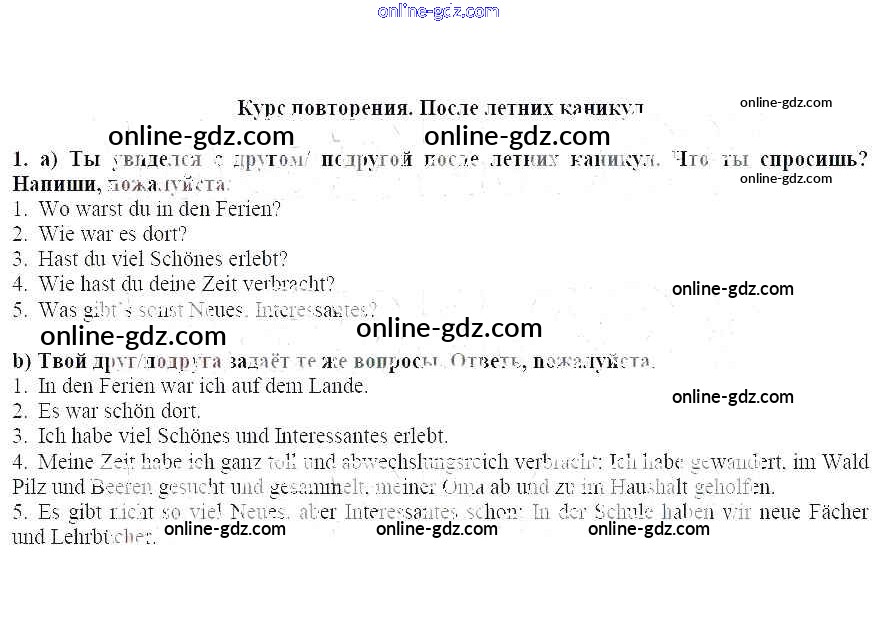 Готовые домашние задания по Немецкому языку за 7 класс Рабочая тетрадь Бим, Садомова 2012 - Курс повторения. После летних каникул 1