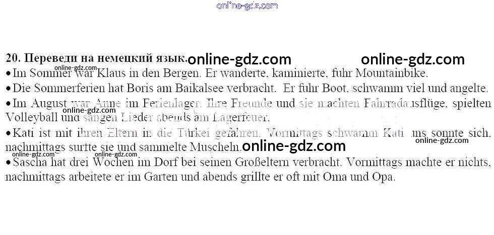 Готовые домашние задания по Немецкому языку за 7 класс Рабочая тетрадь Радченко, Глушак Wunderkinder 2012 - Глава 1. Летние каникулы 20