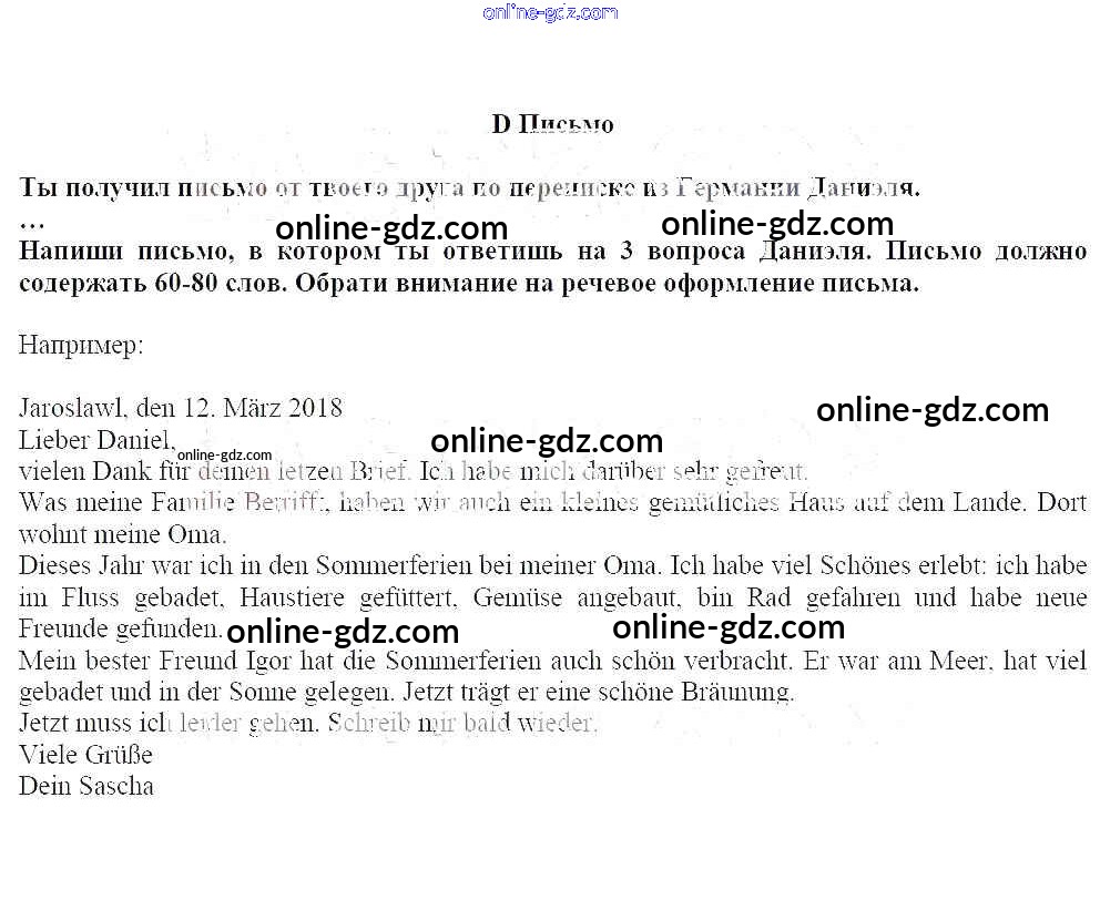 Готовые домашние задания по Немецкому языку за 7 класс Рабочая тетрадь Радченко, Глушак Wunderkinder 2012 - ОГЭ. Подготовка к основному государственному экзамену Глава 1. Летние каникулы Письмо