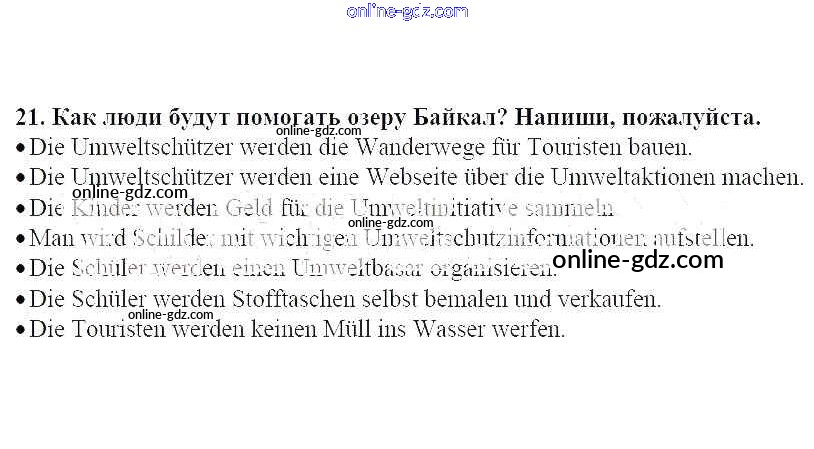 Готовые домашние задания по Немецкому языку за 7 класс Рабочая тетрадь Радченко, Глушак Wunderkinder 2012 - Глава 3. Защита окружающей среды 21