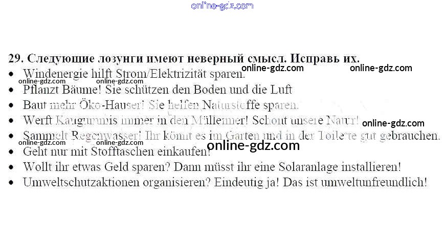 Готовые домашние задания по Немецкому языку за 7 класс Рабочая тетрадь Радченко, Глушак Wunderkinder 2012 - Глава 3. Защита окружающей среды 29