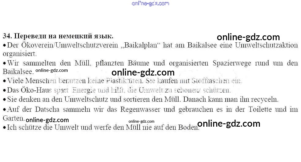 Готовые домашние задания по Немецкому языку за 7 класс Рабочая тетрадь Радченко, Глушак Wunderkinder 2012 - Глава 3. Защита окружающей среды 34