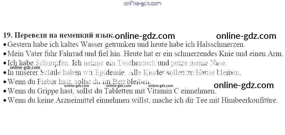 Готовые домашние задания по Немецкому языку за 7 класс Рабочая тетрадь Радченко, Глушак Wunderkinder 2012 - Глава 4. Здоровье 19