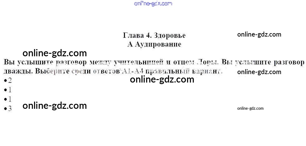 Готовые домашние задания по Немецкому языку за 7 класс Рабочая тетрадь Радченко, Глушак Wunderkinder 2012 - ОГЭ. Подготовка к основному государственному экзамену Глава 4. Здоровье Аудирование