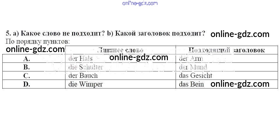 Готовые домашние задания по Немецкому языку за 7 класс Рабочая тетрадь Радченко, Глушак Wunderkinder 2012 - Глава 4. Здоровье 5