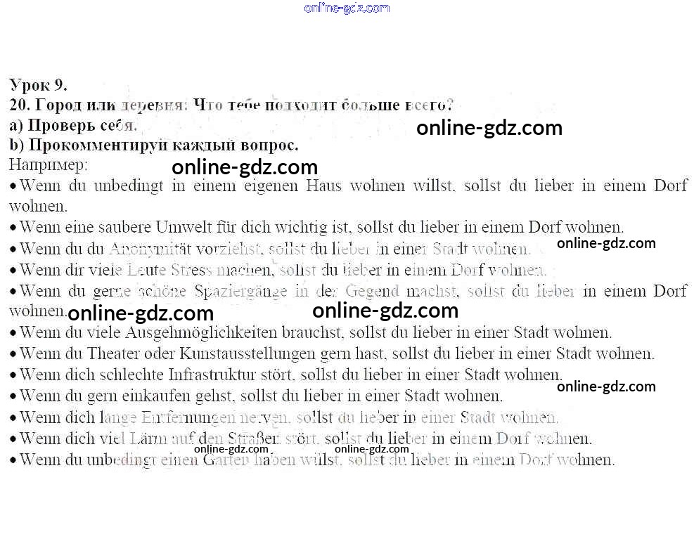Готовые домашние задания по Немецкому языку за 7 класс Рабочая тетрадь Радченко, Глушак Wunderkinder 2012 - Глава 5. Город и деревня 20