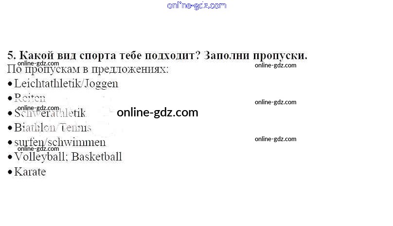 Готовые домашние задания по Немецкому языку за 7 класс Рабочая тетрадь Радченко, Глушак Wunderkinder 2012 - Глава 6. Спорт 5