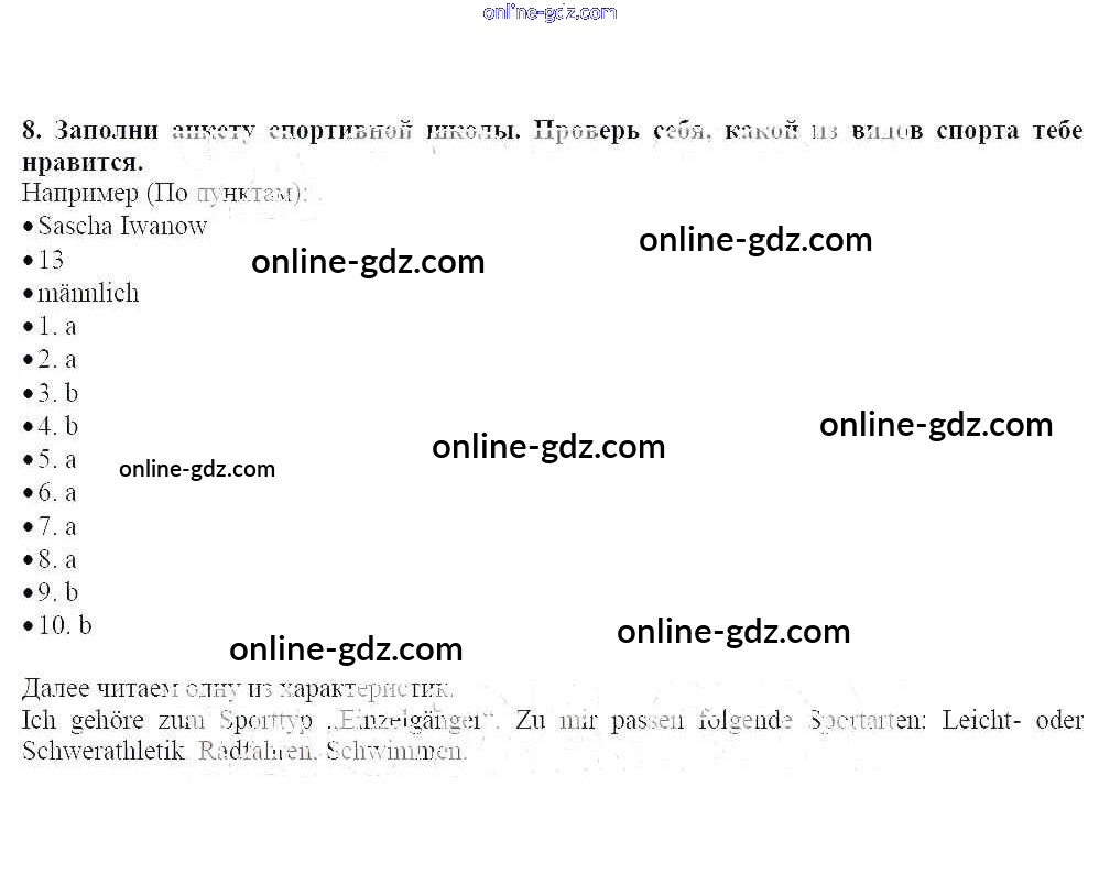 Готовые домашние задания по Немецкому языку за 7 класс Рабочая тетрадь Радченко, Глушак Wunderkinder 2012 - Глава 6. Спорт 8