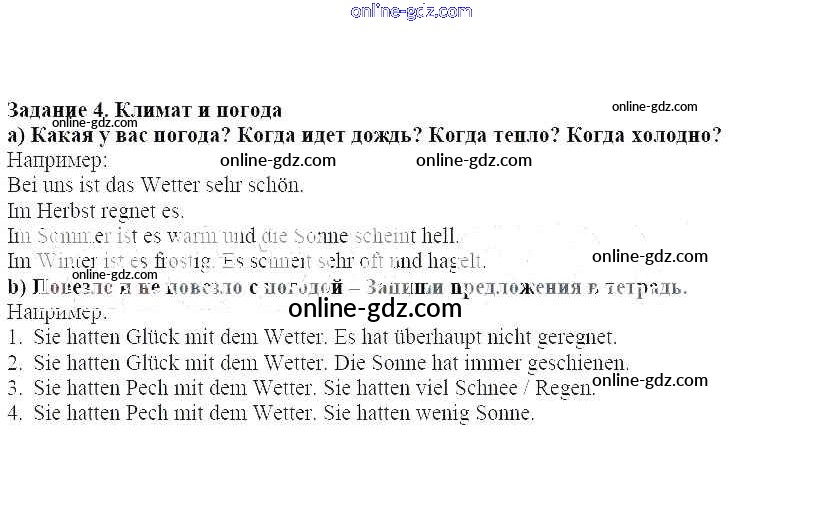 Готовые домашние задания по Немецкому языку за 7 класс Учебник Аверин, Джин Horizonte 2016 - Глава 1. Как прошли каникулы 4
