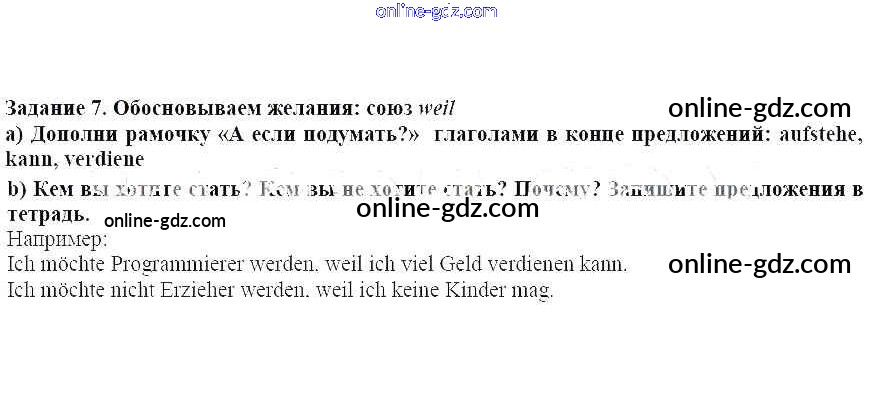 Готовые домашние задания по Немецкому языку за 7 класс Учебник Аверин, Джин Horizonte 2016 - Глава 2. Мои планы 7