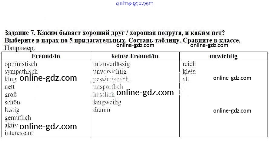Готовые домашние задания по Немецкому языку за 7 класс Учебник Аверин, Джин Horizonte 2016 - Глава 3. Дружба 7