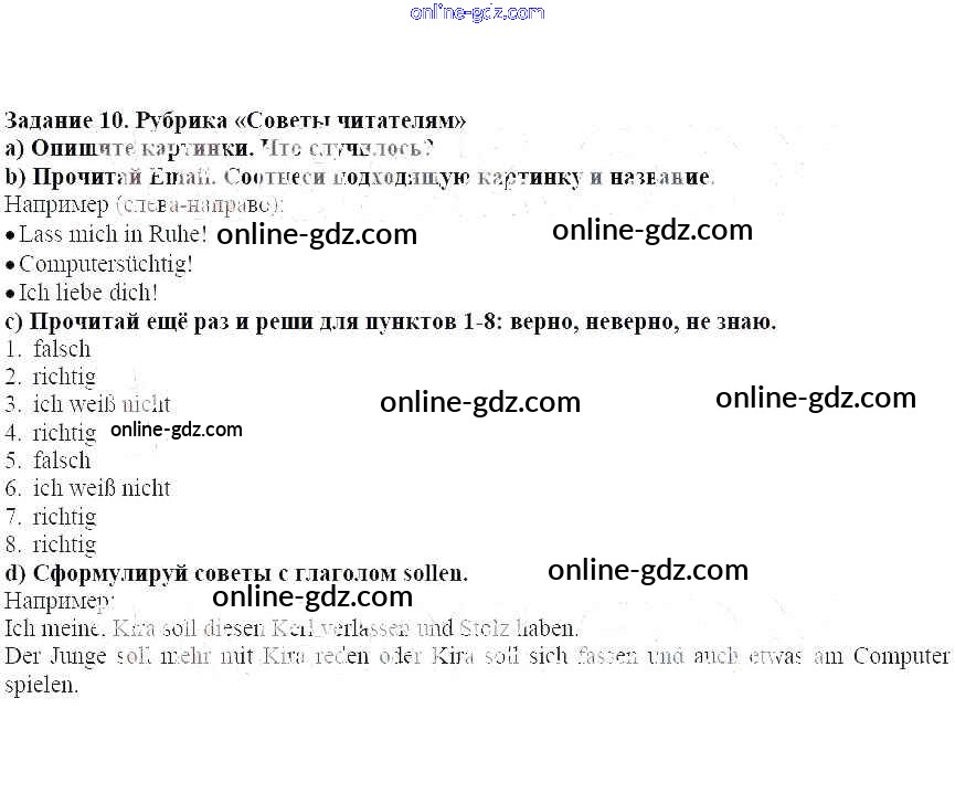Готовые домашние задания по Немецкому языку за 7 класс Учебник Аверин, Джин Horizonte 2016 - Глава 4. Изображения и звуки 10
