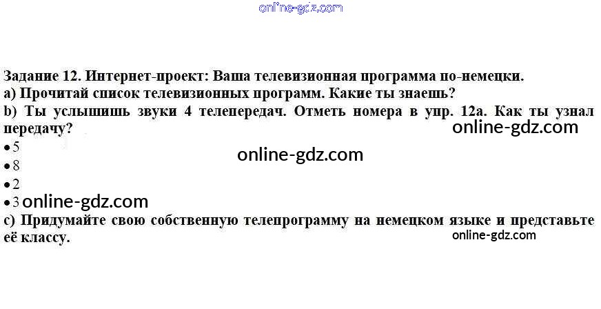 Готовые домашние задания по Немецкому языку за 7 класс Учебник Аверин, Джин Horizonte 2016 - Глава 4. Изображения и звуки 12