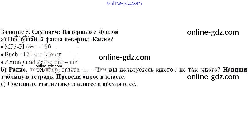 Готовые домашние задания по Немецкому языку за 7 класс Учебник Аверин, Джин Horizonte 2016 - Глава 4. Изображения и звуки 5