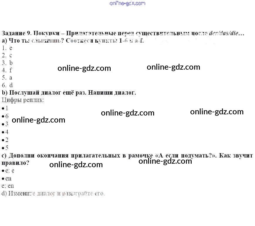 Готовые домашние задания по Немецкому языку за 7 класс Учебник Аверин, Джин Horizonte 2016 - Глава 6. Это мне нравится 9