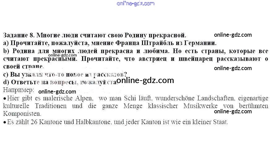 Готовые домашние задания по Немецкому языку за 7 класс Учебник Бим, Садомова Академический школьный учебник 2019 - Раздел 1. Чтение обогащает ум Глава 1. Что мы называем Родиной 8