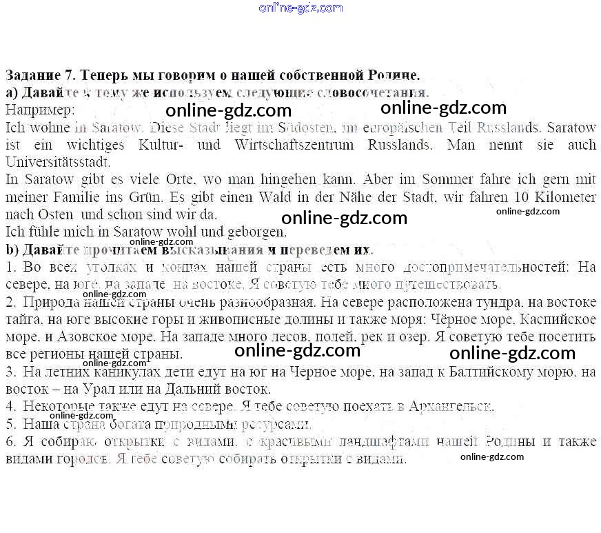 Готовые домашние задания по Немецкому языку за 7 класс Учебник Бим, Садомова Академический школьный учебник 2019 - Раздел 2. Что выучишь, то и будешь знать! Глава 1. Что мы называем Родиной 7