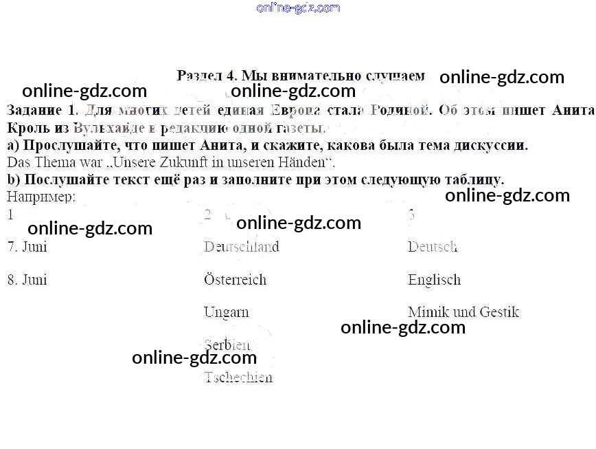 Готовые домашние задания по Немецкому языку за 7 класс Учебник Бим, Садомова Академический школьный учебник 2019 - Раздел 4. Мы внимательно слушаем Глава 1. Что мы называем Родиной 1