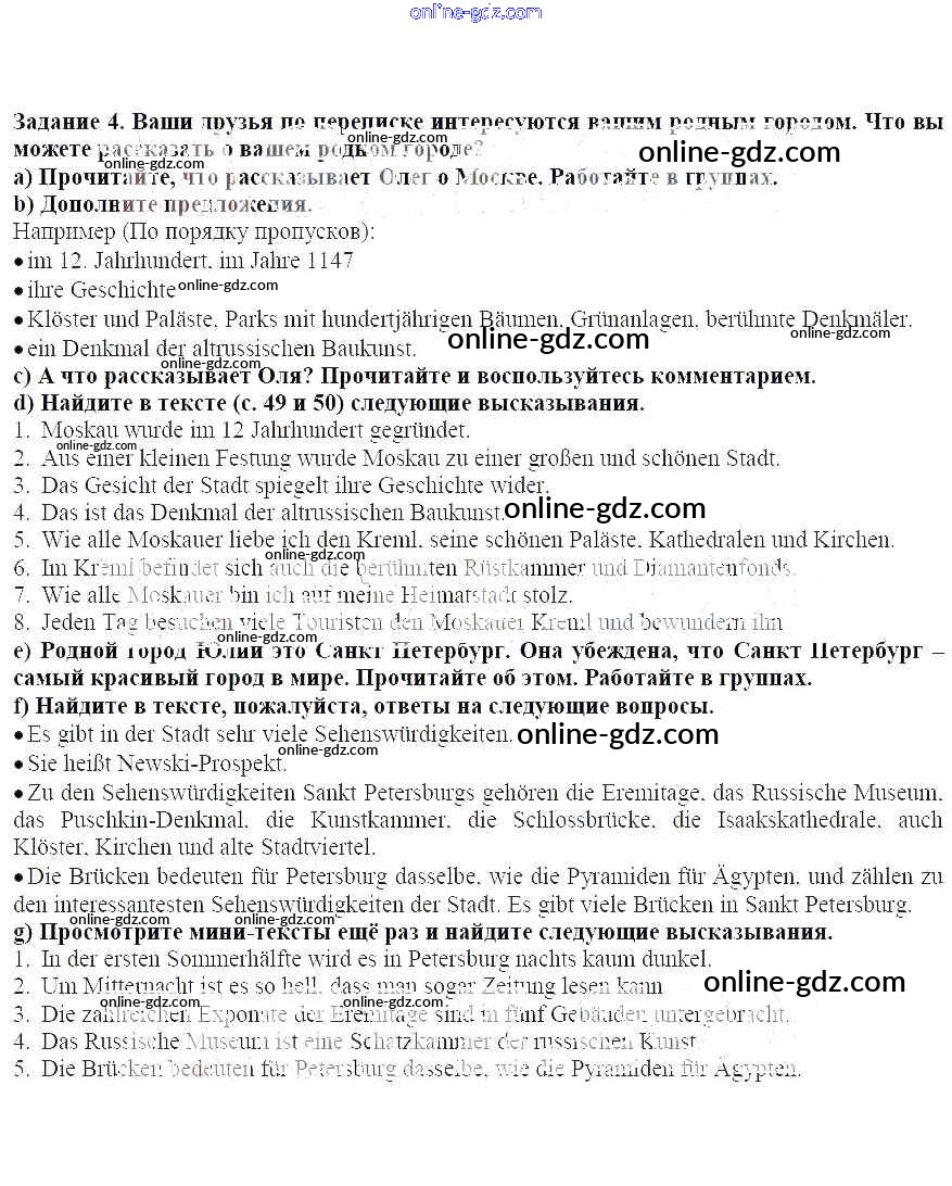 Готовые домашние задания по Немецкому языку за 7 класс Учебник Бим, Садомова Академический школьный учебник 2019 - Раздел 1. Чтение обогащает ум Глава 2. Облик города - это визитная карточка страны 4
