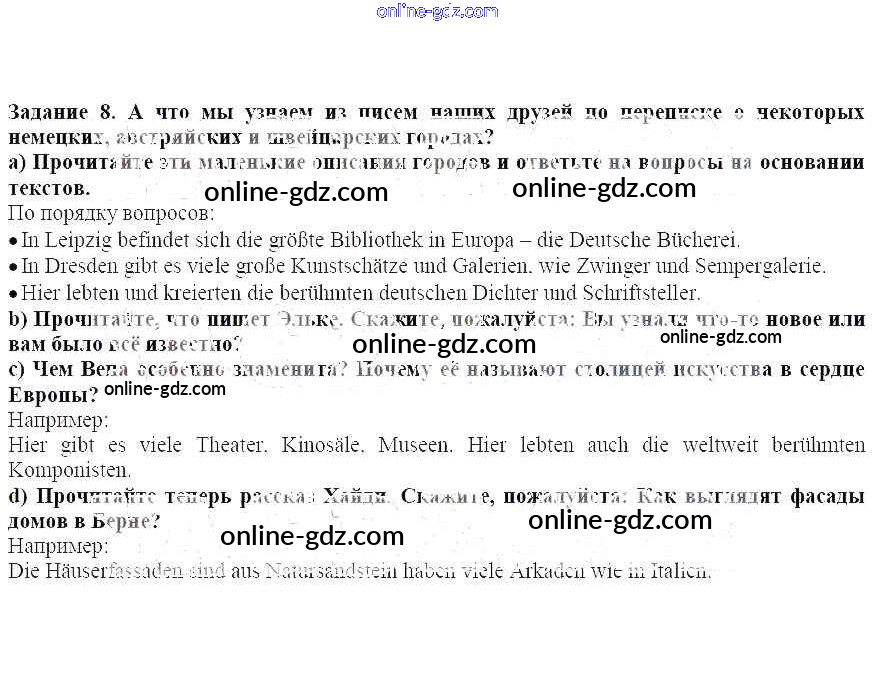 Готовые домашние задания по Немецкому языку за 7 класс Учебник Бим, Садомова Академический школьный учебник 2019 - Раздел 1. Чтение обогащает ум Глава 2. Облик города - это визитная карточка страны 8