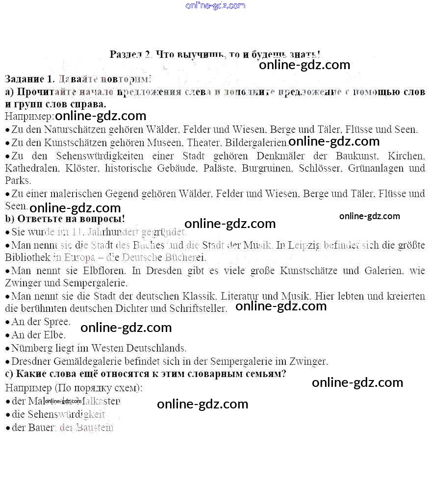 Готовые домашние задания по Немецкому языку за 7 класс Учебник Бим, Садомова Академический школьный учебник 2019 - Раздел 2. Что выучишь, то и будешь знать! Глава 2. Облик города - это визитная карточка страны 1