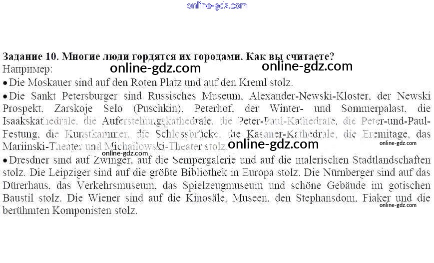 Готовые домашние задания по Немецкому языку за 7 класс Учебник Бим, Садомова Академический школьный учебник 2019 - Раздел 2. Что выучишь, то и будешь знать! Глава 2. Облик города - это визитная карточка страны 10