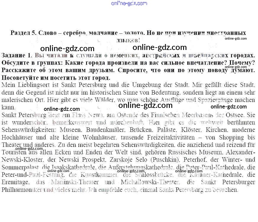 Готовые домашние задания по Немецкому языку за 7 класс Учебник Бим, Садомова Академический школьный учебник 2019 - Раздел 5. Слово - серебро, молчание - золото. Но не при изучении иностранных языков! Глава 2. Облик города - это визитная карточка страны 1