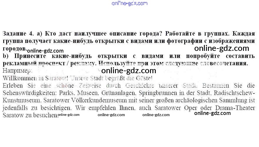 Готовые домашние задания по Немецкому языку за 7 класс Учебник Бим, Садомова Академический школьный учебник 2019 - Раздел 5. Слово - серебро, молчание - золото. Но не при изучении иностранных языков! Глава 2. Облик города - это визитная карточка страны 4