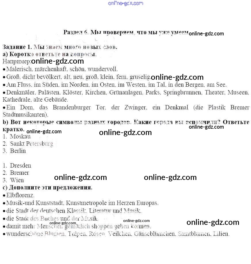 Готовые домашние задания по Немецкому языку за 7 класс Учебник Бим, Садомова Академический школьный учебник 2019 - Раздел 6. Мы проверяем, что мы уже умеем Глава 2. Облик города - это визитная карточка страны 1