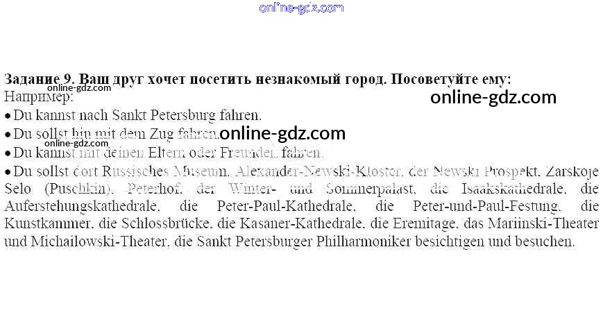 Готовые домашние задания по Немецкому языку за 7 класс Учебник Бим, Садомова Академический школьный учебник 2019 - Раздел 6. Мы проверяем, что мы уже умеем Глава 3. Жизнь в большом современном городе. Какие тут есть проблемы 9