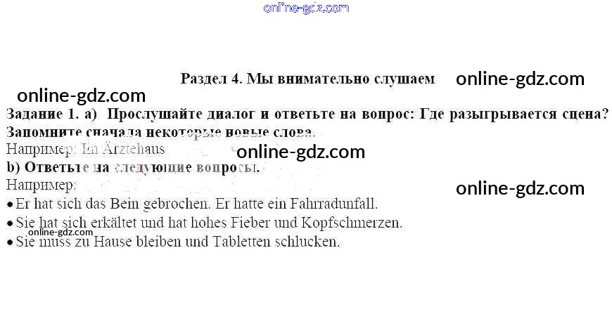 Готовые домашние задания по Немецкому языку за 7 класс Учебник Бим, Садомова Академический школьный учебник 2019 - Раздел 4. Мы внимательно слушаем Глава 6. В здоровом теле - здоровый дух 1