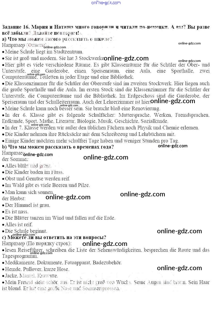 Готовые домашние задания по Немецкому языку за 7 класс Учебник Бим, Садомова Академический школьный учебник 2019 - Курс повторения. После летних каникул 16
