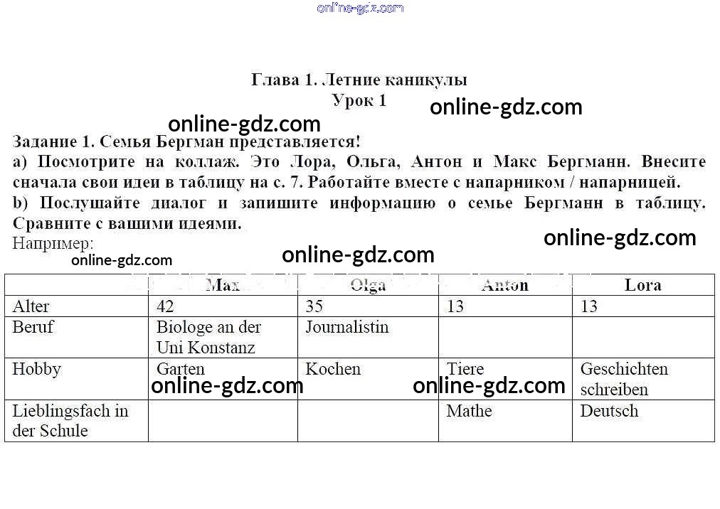 Готовые домашние задания по Немецкому языку за 7 класс Учебник Радченко, Конго Wunderkinder 2016 - Урок 1 Глава 1. Летние каникулы 1