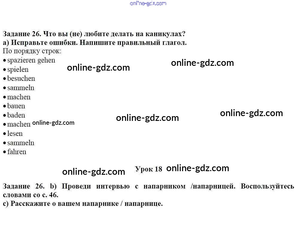 Готовые домашние задания по Немецкому языку за 7 класс Учебник Радченко, Конго Wunderkinder 2016 - Уроки 2-18 Глава 1. Летние каникулы 26
