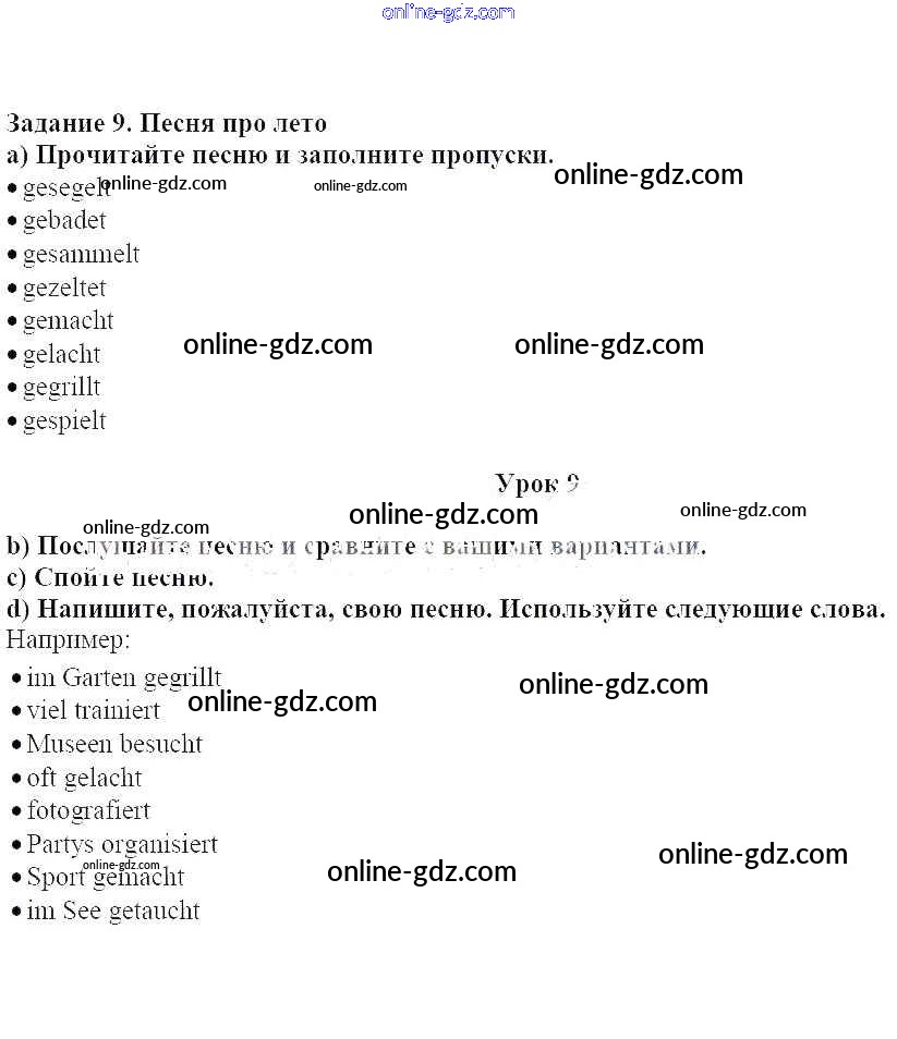Готовые домашние задания по Немецкому языку за 7 класс Учебник Радченко, Конго Wunderkinder 2016 - Уроки 2-18 Глава 1. Летние каникулы 9