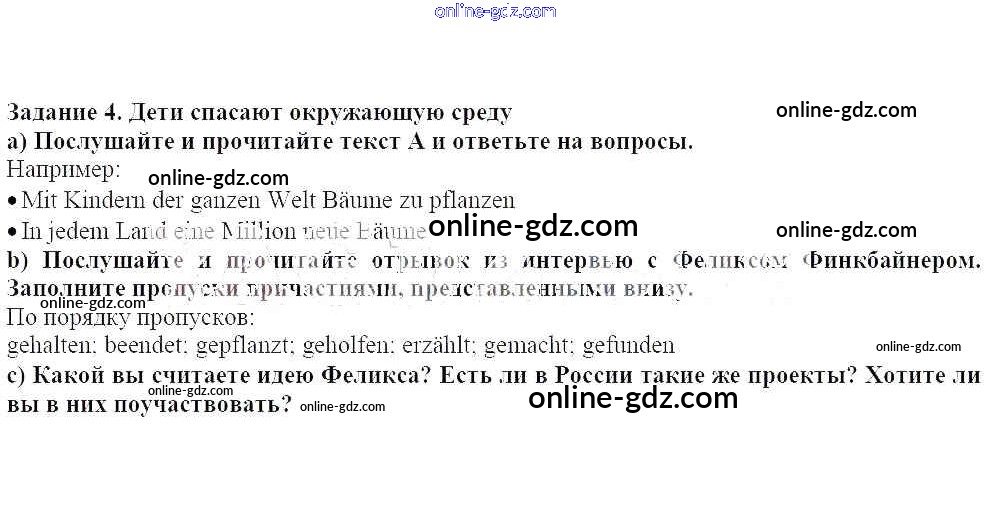 Готовые домашние задания по Немецкому языку за 7 класс Учебник Радченко, Конго Wunderkinder 2016 - Уроки 1-12 Глава 3. Защита окружающей среды 4