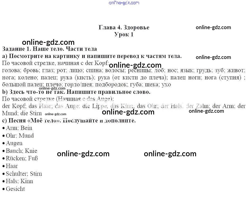 Готовые домашние задания по Немецкому языку за 7 класс Учебник Радченко, Конго Wunderkinder 2016 - Уроки 1-15 Глава 4. Здоровье 1