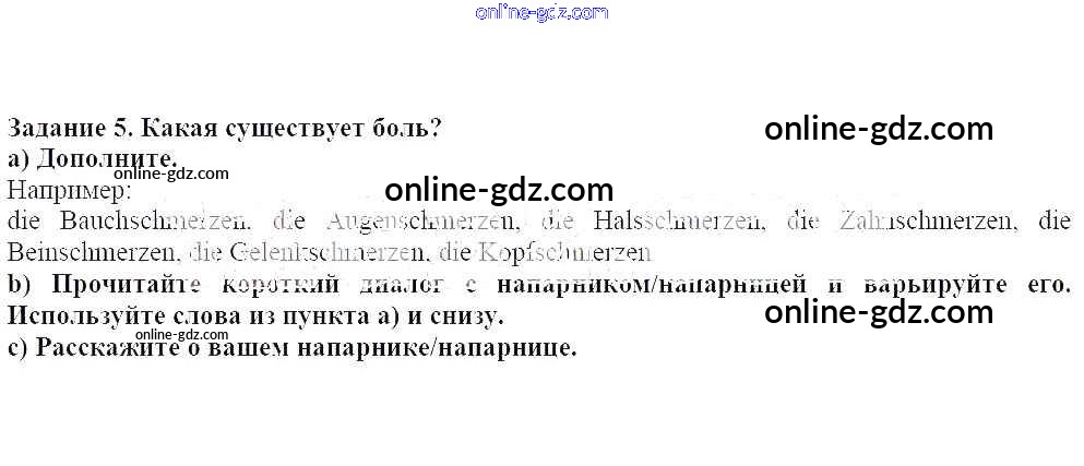 Готовые домашние задания по Немецкому языку за 7 класс Учебник Радченко, Конго Wunderkinder 2016 - Уроки 1-15 Глава 4. Здоровье 5