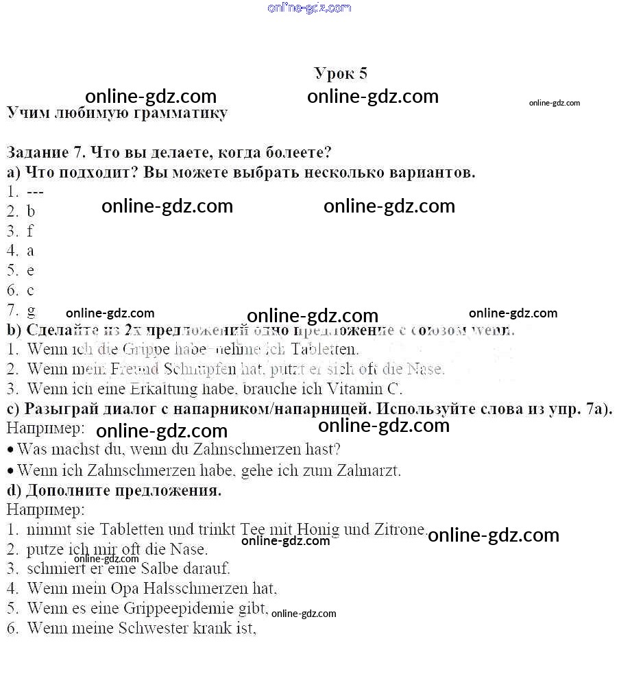 Готовые домашние задания по Немецкому языку за 7 класс Учебник Радченко, Конго Wunderkinder 2016 - Уроки 1-15 Глава 4. Здоровье 7