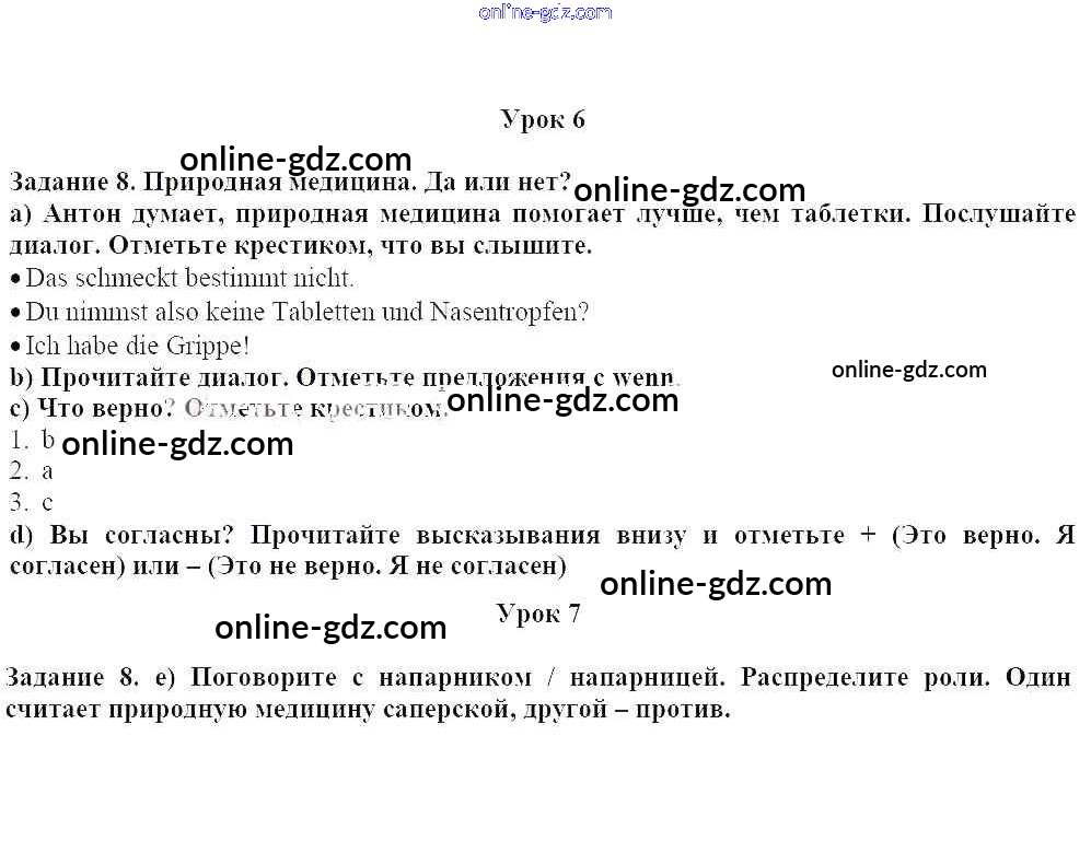 Готовые домашние задания по Немецкому языку за 7 класс Учебник Радченко, Конго Wunderkinder 2016 - Уроки 1-15 Глава 4. Здоровье 8
